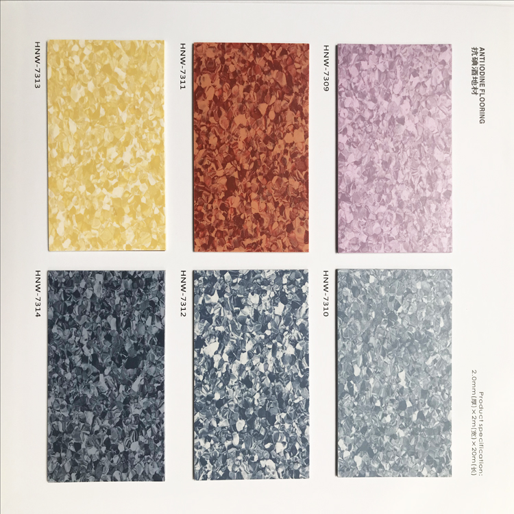 我們生產(chǎn)出的同透膠地板內(nèi)部測示的標(biāo)準(zhǔn)對碘酒的防滲透能力時間為五分鐘內(nèi)無殘留;